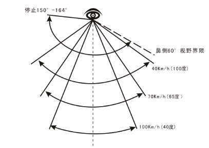 ●行駛中不同速度的單眼視野范圍: