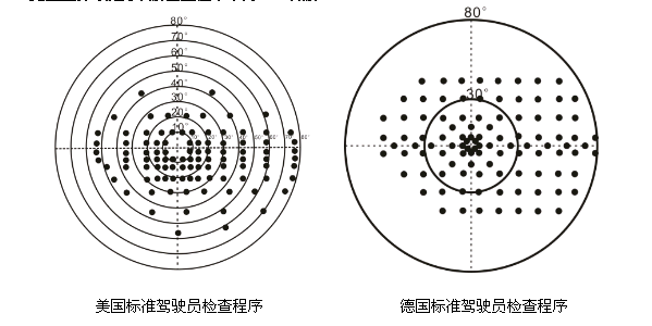 本款程序的設計原理是基于美國標準駕駛員檢查程序,并增加了水平視野的檢查范圍(160°)。